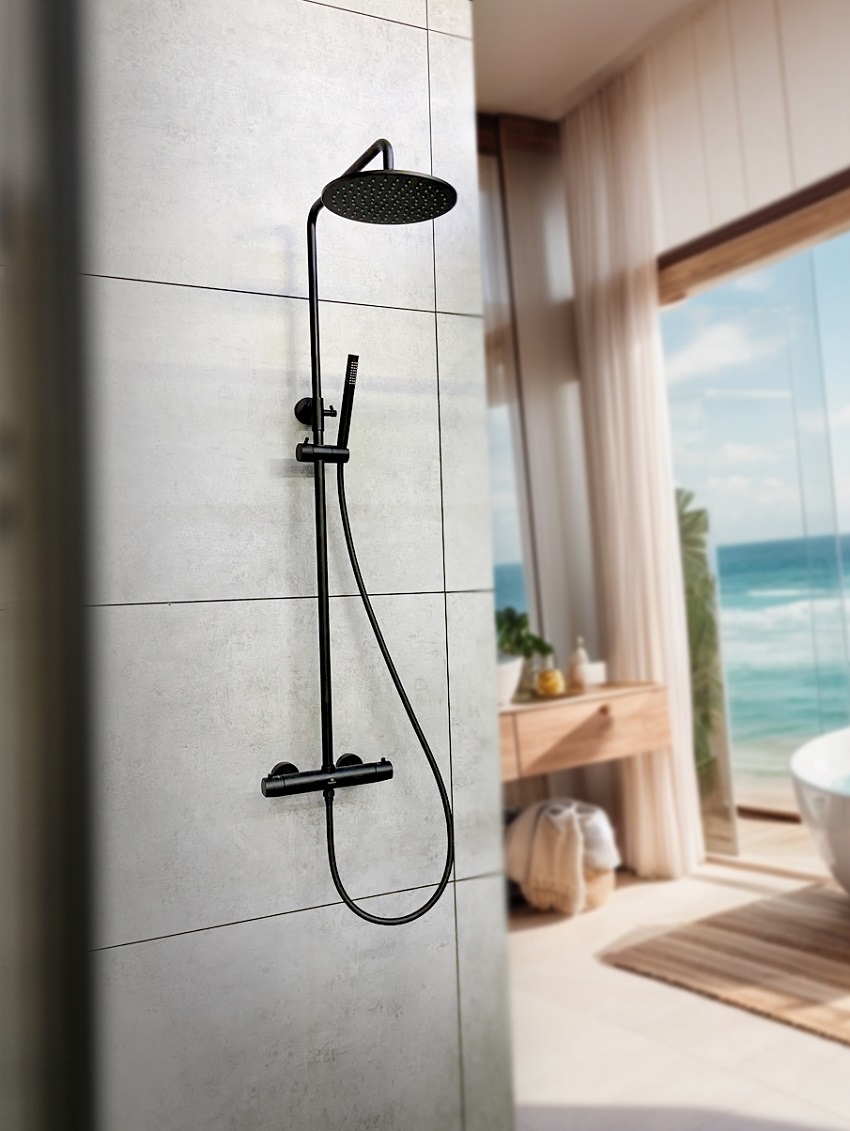 Душевая стойка с термостатом AltroBagno Метрополи черный матовый ALTROBAGNOMetropoli030422NeOp