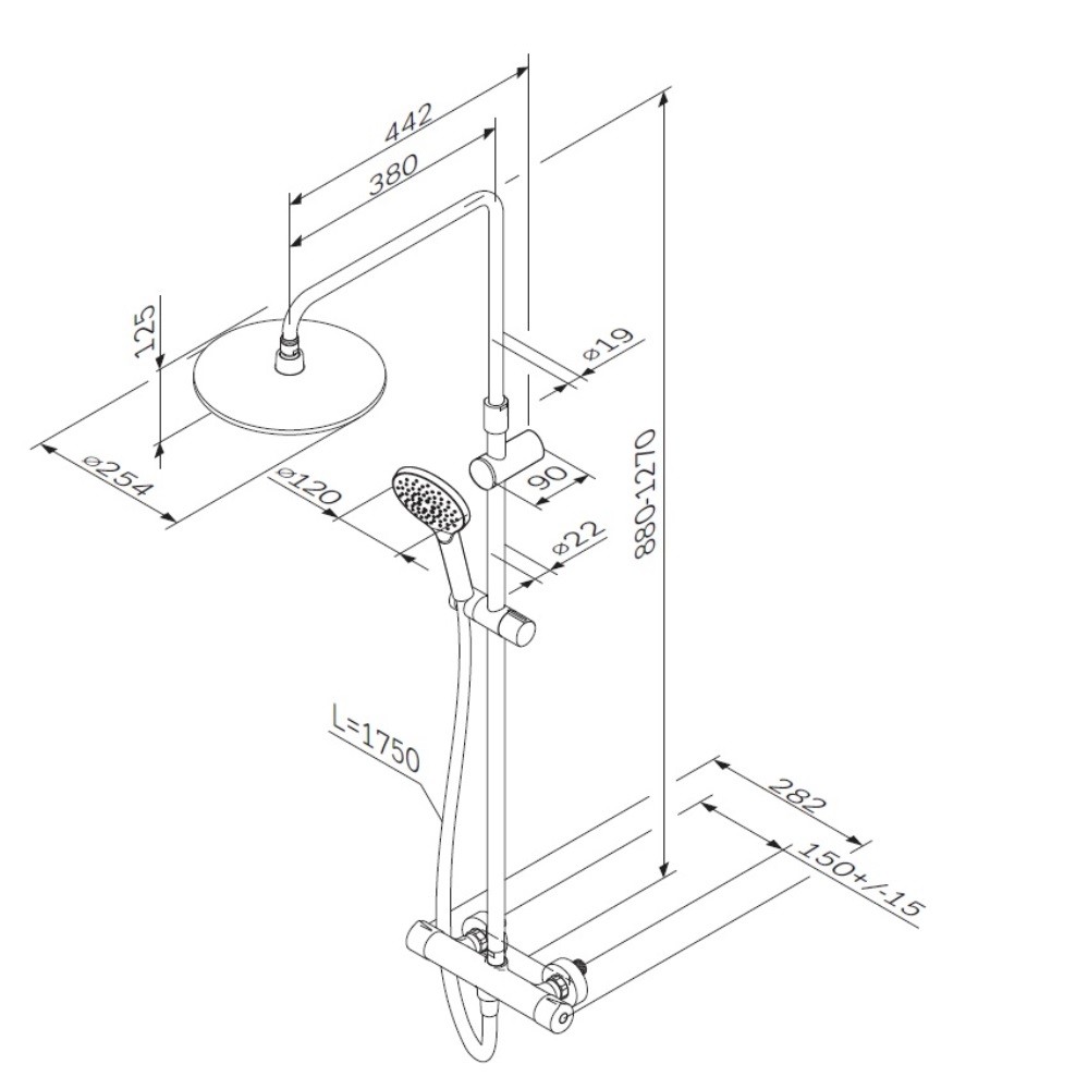 Длина душевого шланга 1750 мм