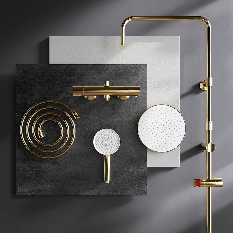 - Душевая стойка с термостатом Am.Pm X-Joy золото F0785A499
