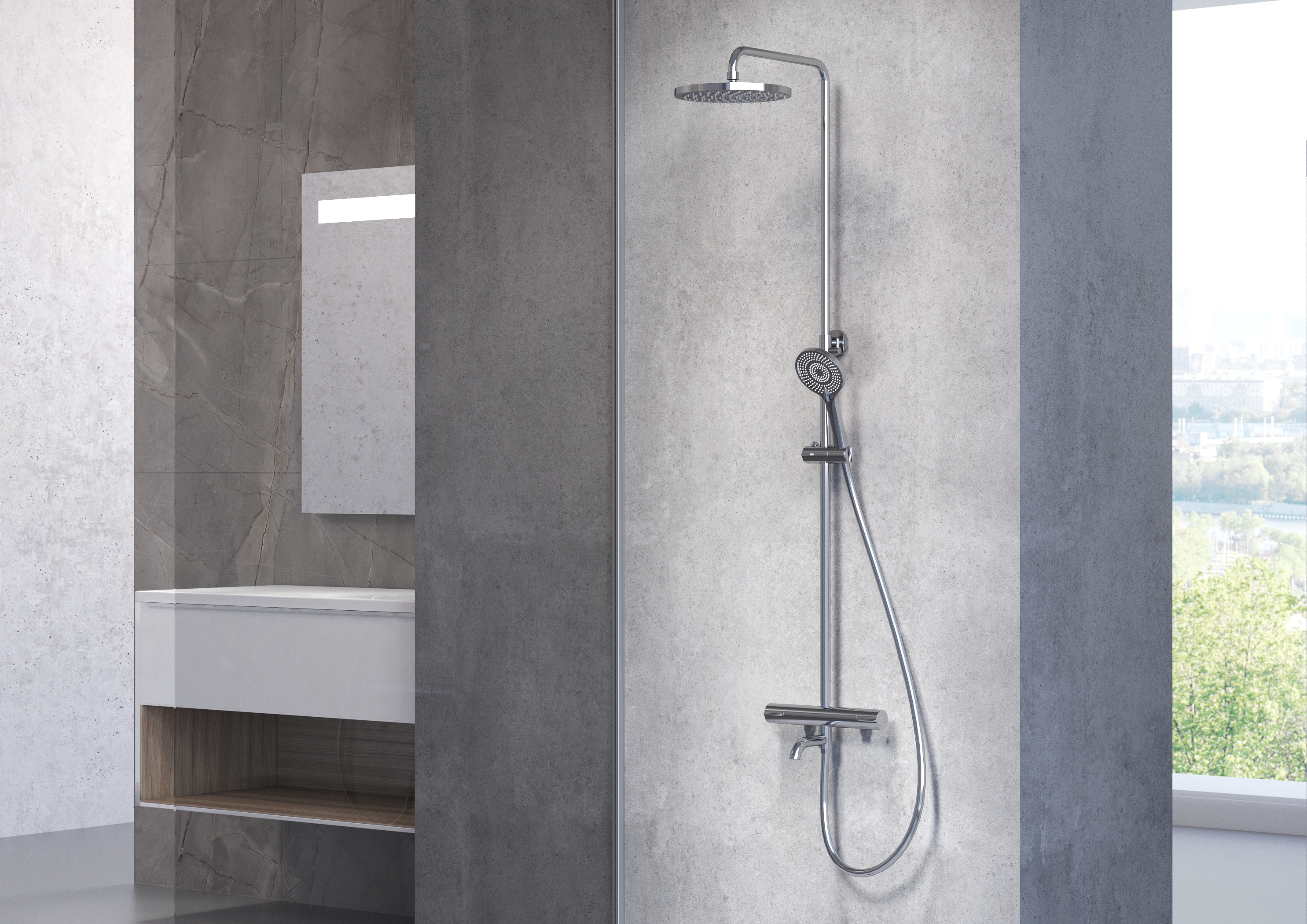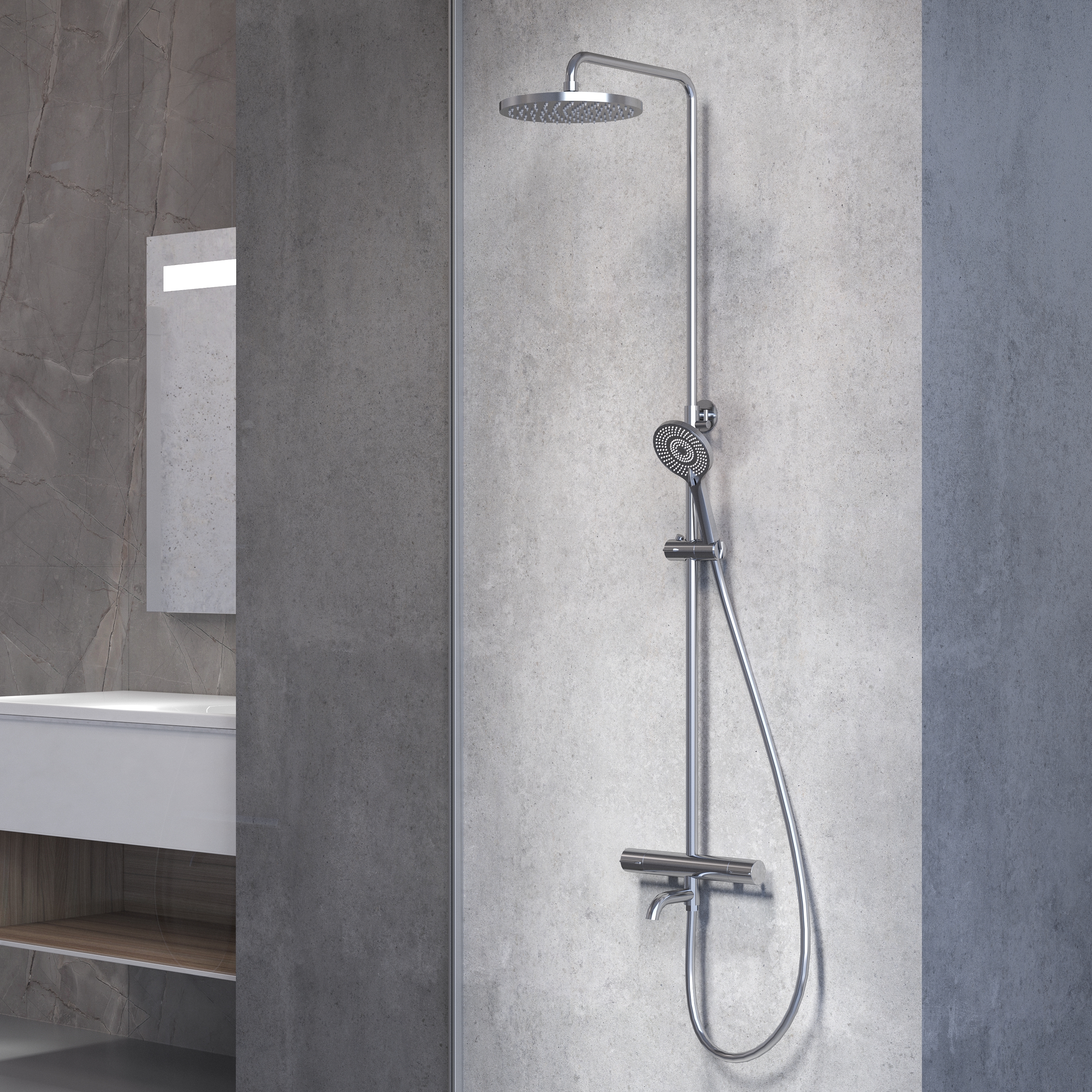Душевая стойка с термостатом Avrora Tora хром AV7140