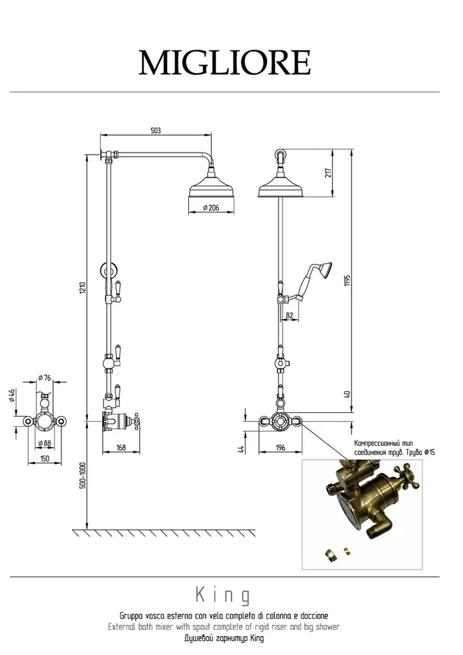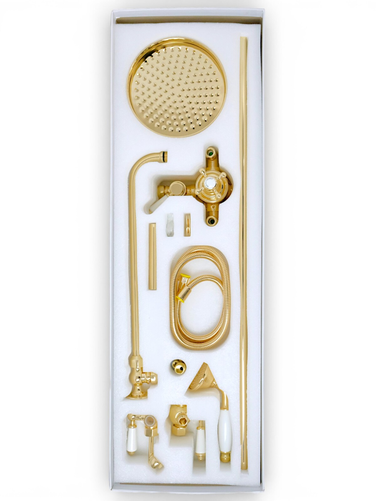 | В комплекте | Душевой гарнитур, верхний душ, держатель для душа, душевой шланг, душевая лейка, переключатель потоков |
