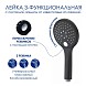 Душевая насадка для комплекта производится из ABS-пластика. Форсунки из силикона с системой защиты от известковых отложений. Насадка крепится к стойке при помощи шарнирного соединителя, внутрь которого встроен сетчатый аэратор для равномерного распределения воды. Также шарнирный соединитель позволяет менять угол наклона душевой насадки от 0 до 22 градусов.