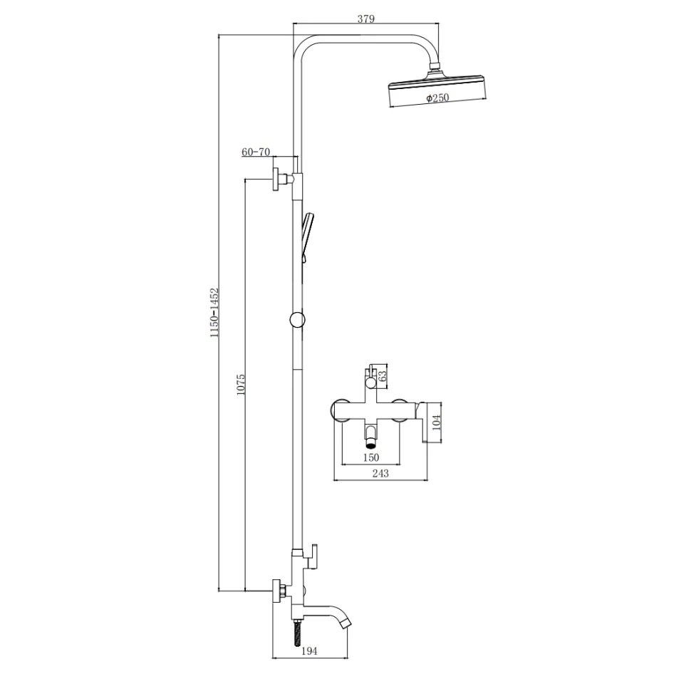 Высота душевой штанги: 1452 мм
