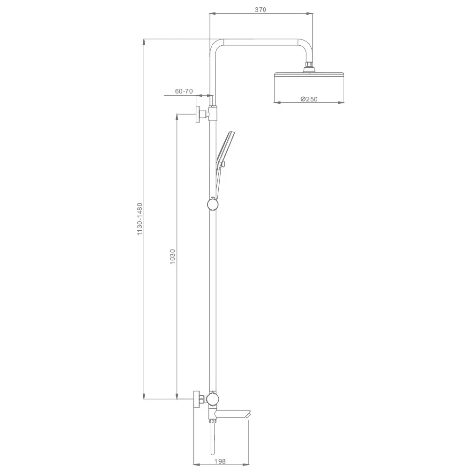 Регулируемая душевая штанга: 1130-1480 мм