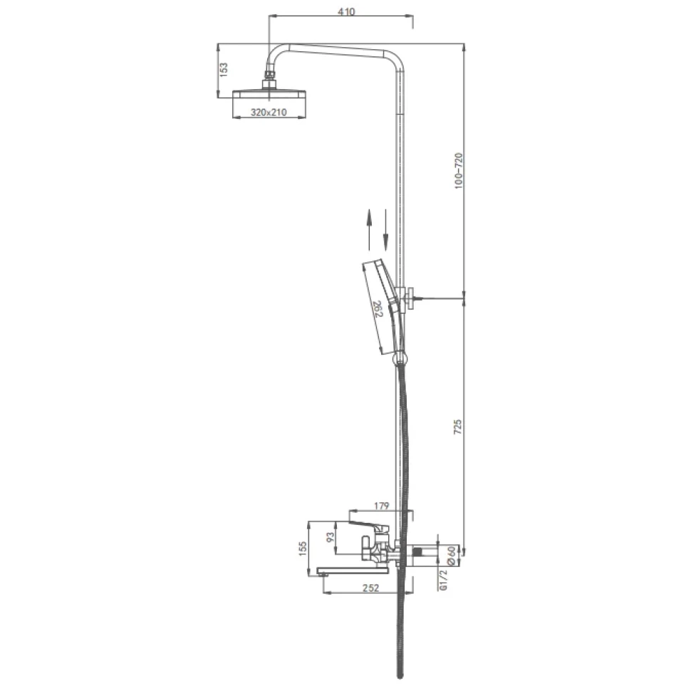 Душевая штанга с держателем лейки, ручной душ, смеситель, шланг