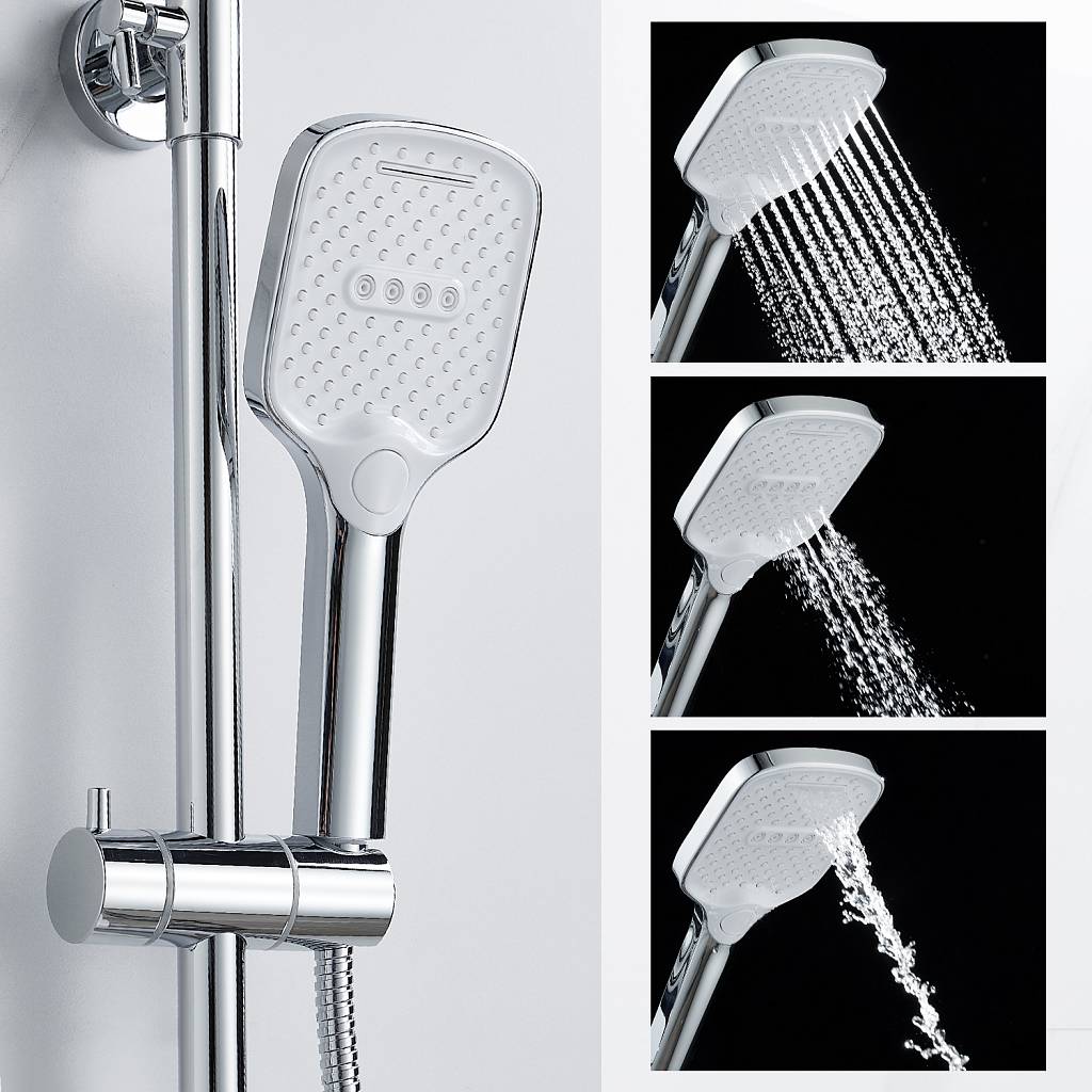 Душевая штанга с держателем лейки, ручной душ, смеситель, шланг