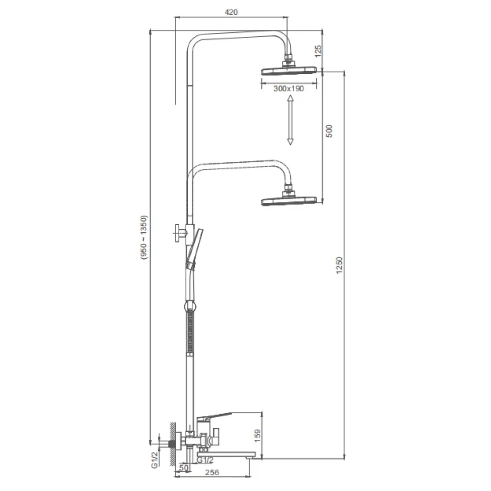 Регулируемая по высоте душевая штанга: 950-1350 мм