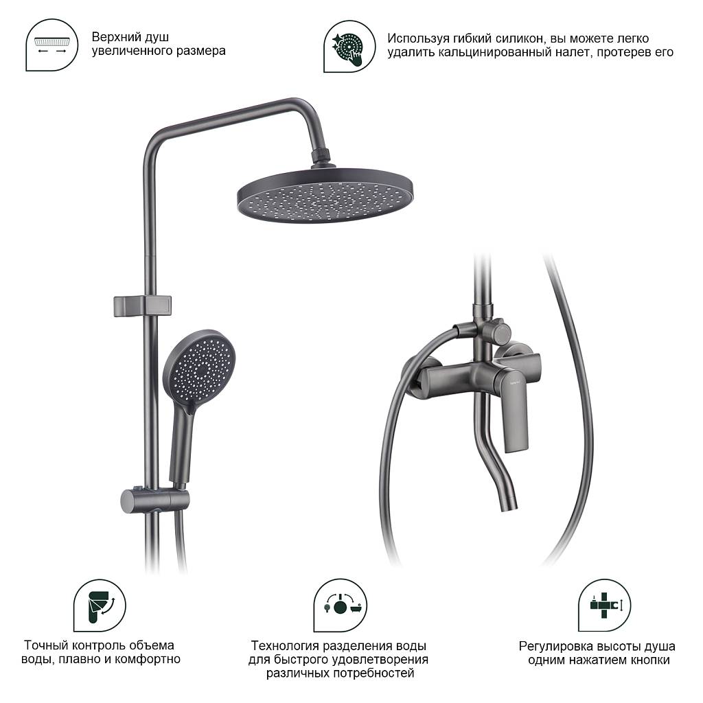 Душевая штанга с держателем лейки, ручной душ, смеситель, шланг