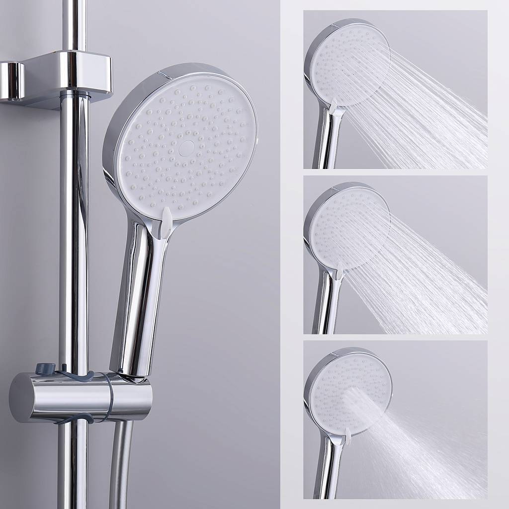 Душевая штанга с держателем лейки, ручной душ, смеситель, шланг