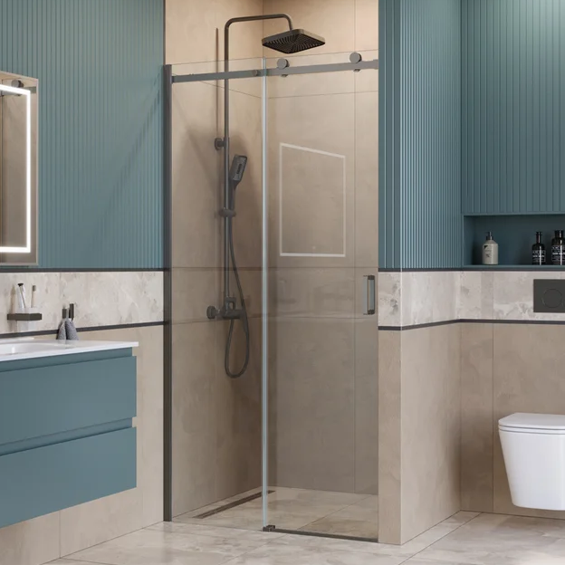 Душевая дверь в нишу BelBagno SOFT_CLOSE-2-BF-1 110 см оружейная сталь/прозрачное SOFT_CLOSE-2-BF-1-110-C-GM
