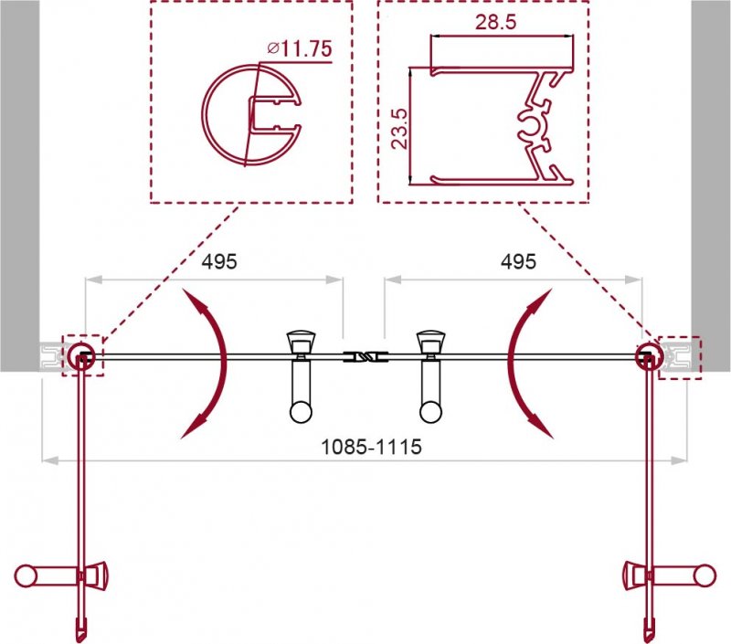 | Особенности | Регулировка ширины предусмотрена за счет боковых профилей |