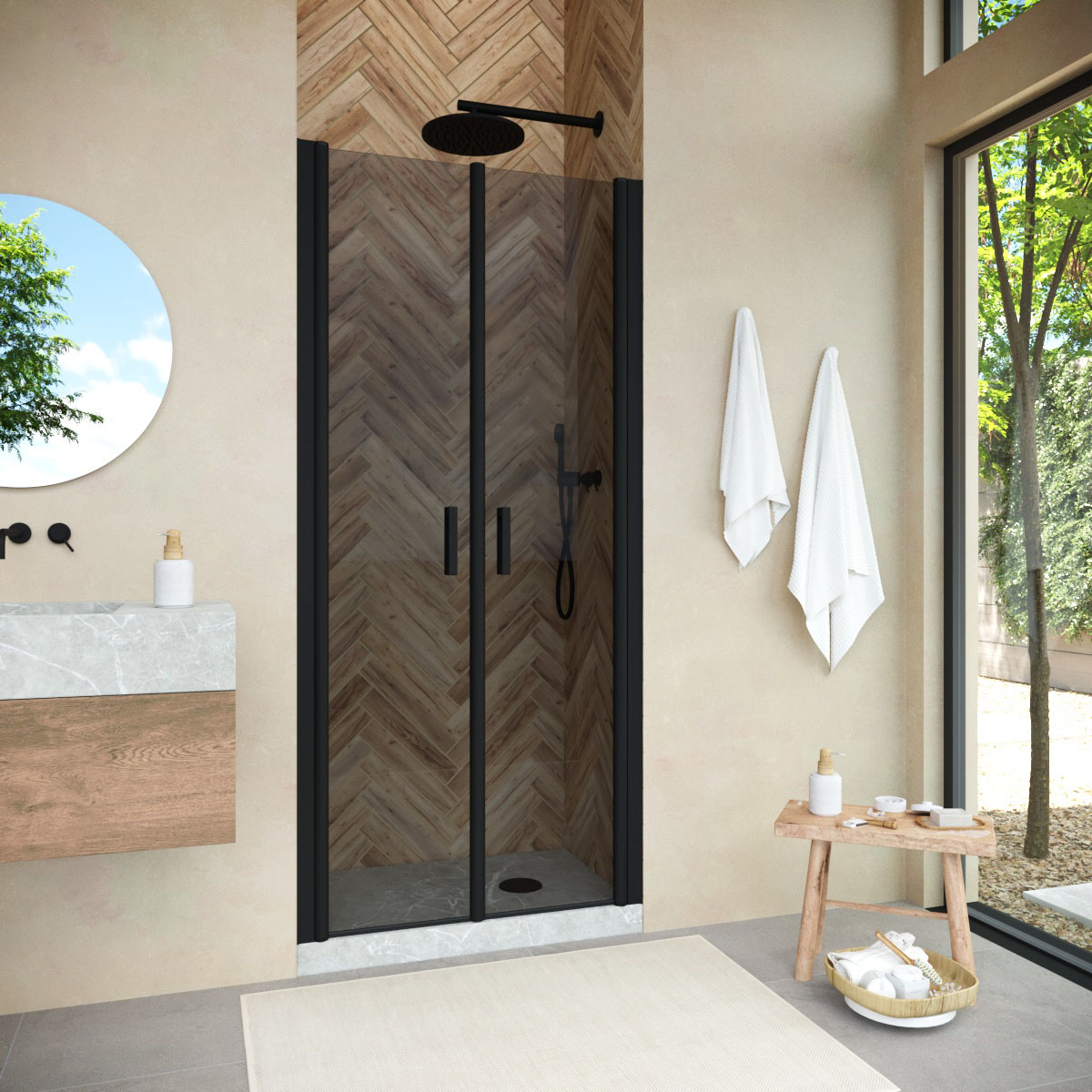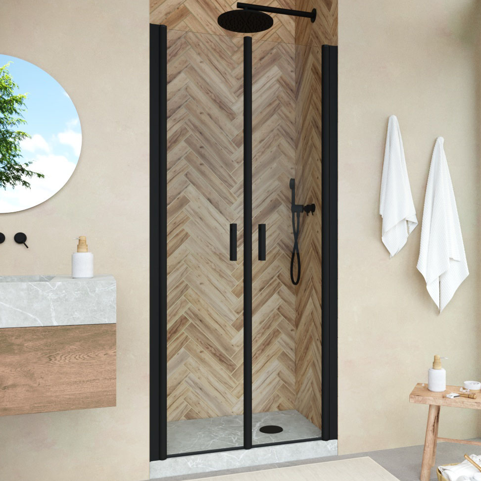 Душевая дверь Vegas-Glass Е2Р NOVO 100х189 см черный матовый/стекло разное