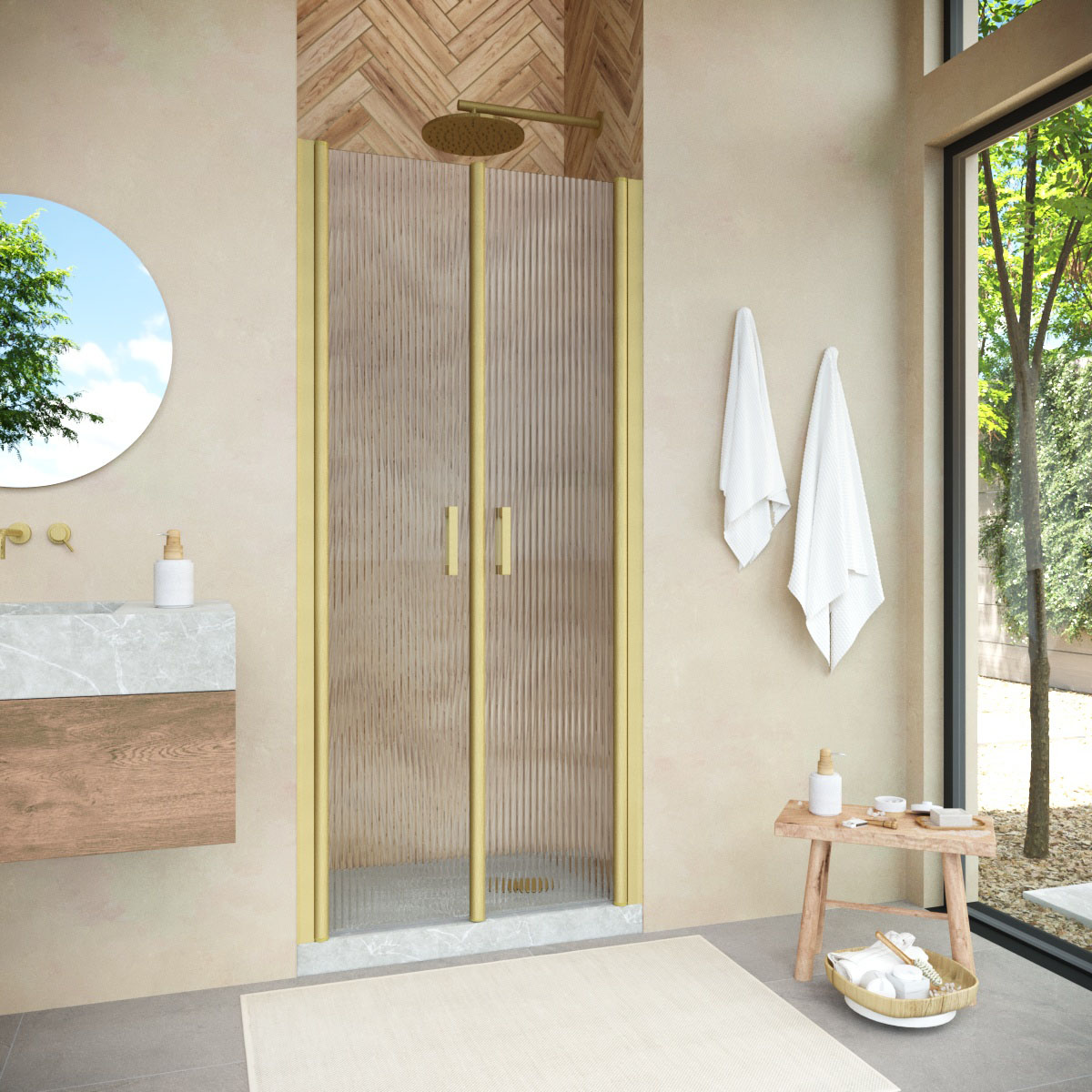 Душевая дверь Vegas-Glass Е2Р NOVO 100х189 см золото матовое/стекло разное