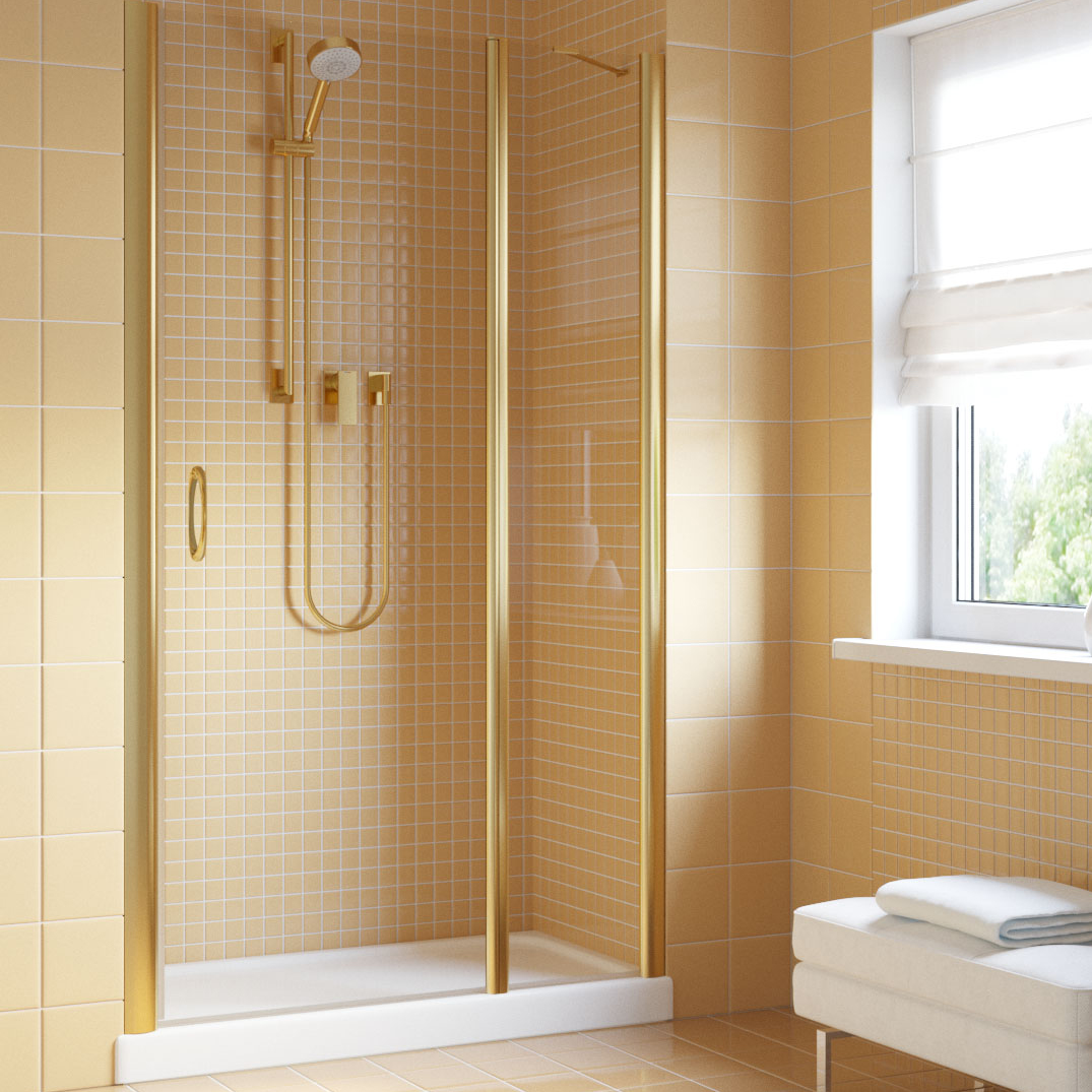 Душевая дверь Vegas-Glass EP-F-1 LUX 110х199,5 см золото глянцевое/стекло разное