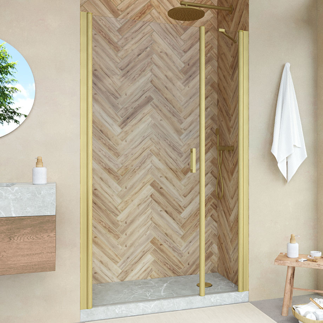 Душевая дверь Vegas-Glass EP-F-2 NOVO 100х200 см золото матовое/стекло разное