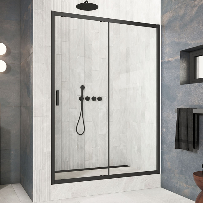 Душевая дверь Vegas-Glass ZP Protec 110х200 см черный матовый/стекло разное