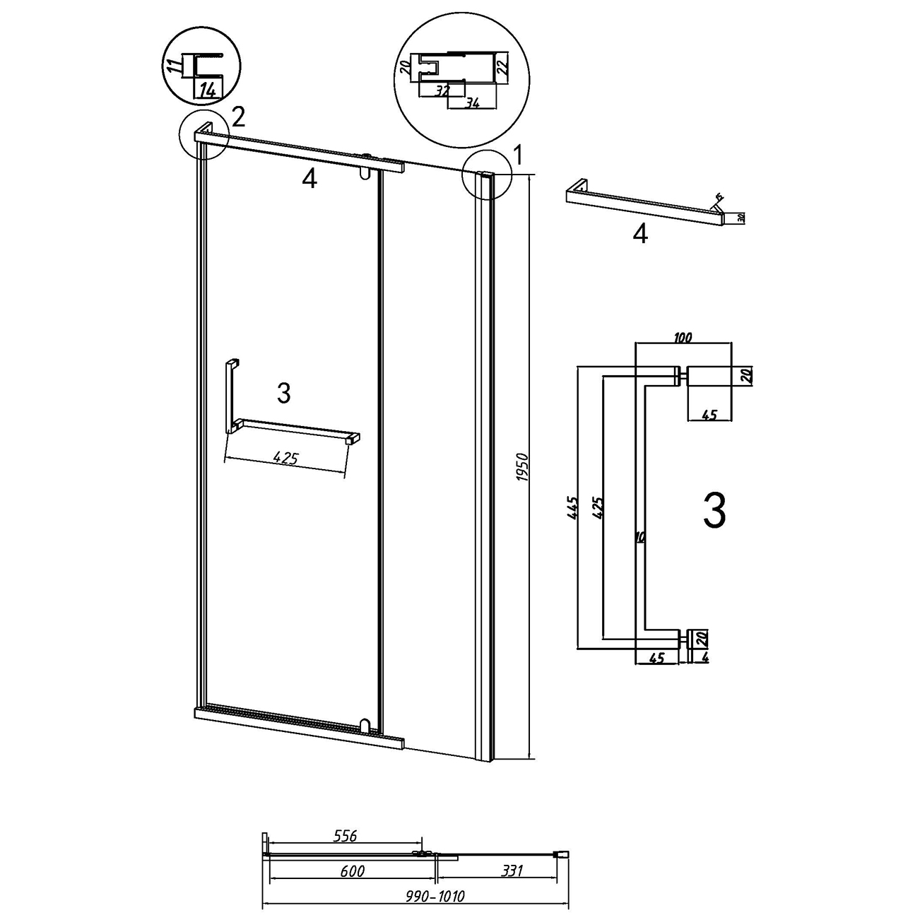 | Конструкция | 1 распашная/ вход 55,6 см/ ориентация универсальная |