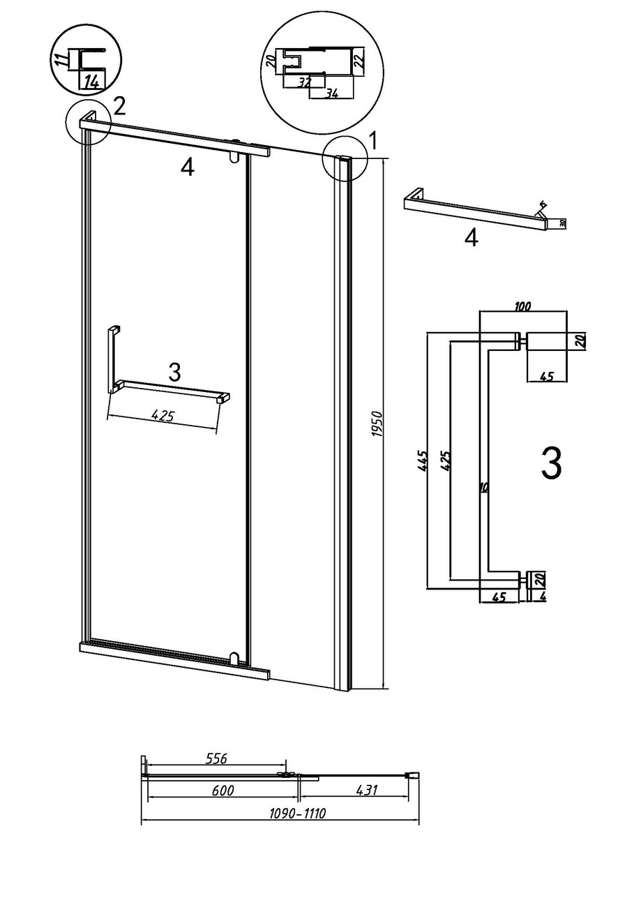 | Конструкция | 1 распашная/ вход 55,6 см/ ориентация универсальная |
