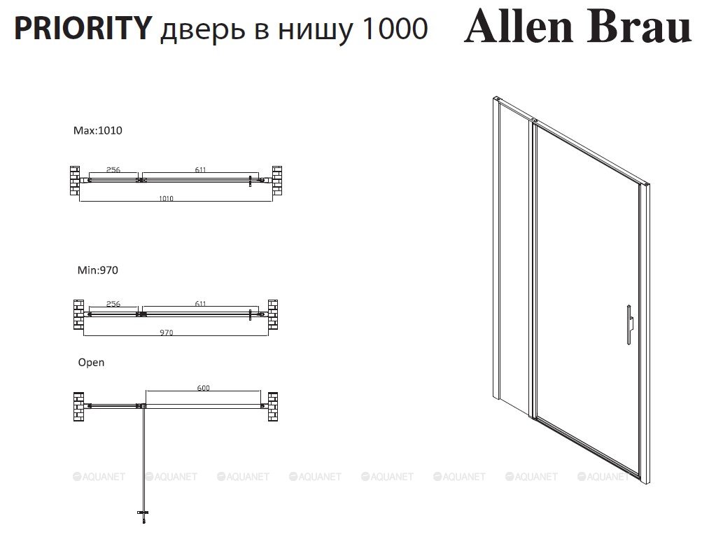 - Дверь в нишу распашная Allen Brau Priority 100х200 см хром/прозрачное 3.31004.00 (252371)
