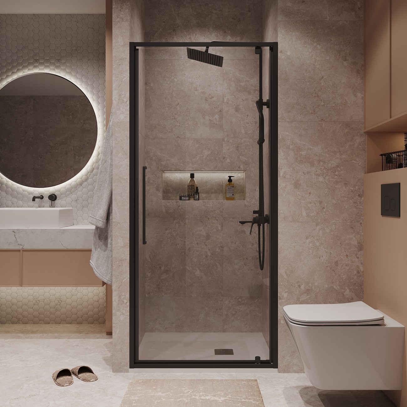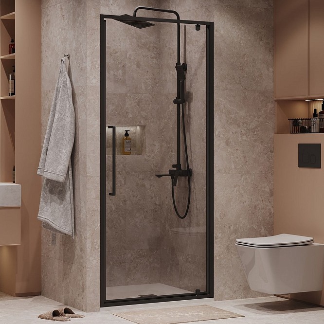 Дверь в нишу распашная Niagara Nova 100 см черный матовый/прозрачное NG-85-10AB