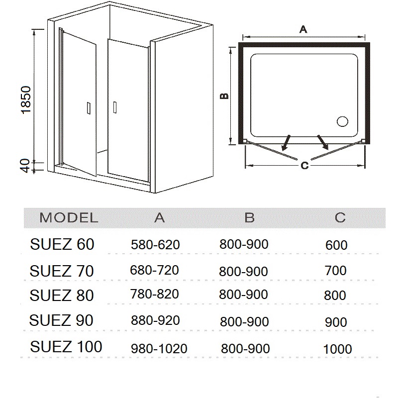 Дверь в нишу распашная River SUEZ 100 MT 100х185 см хром/матовое 10000001116