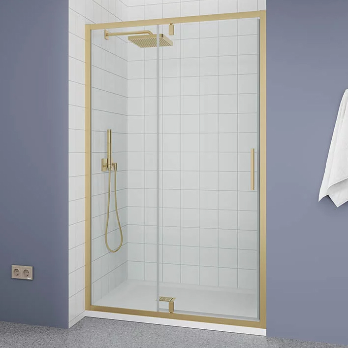- Дверь в нишу распашная Veconi Ottimo P20 G 100х190 см золото брашинг/прозрачное OP20G-100-01-C9