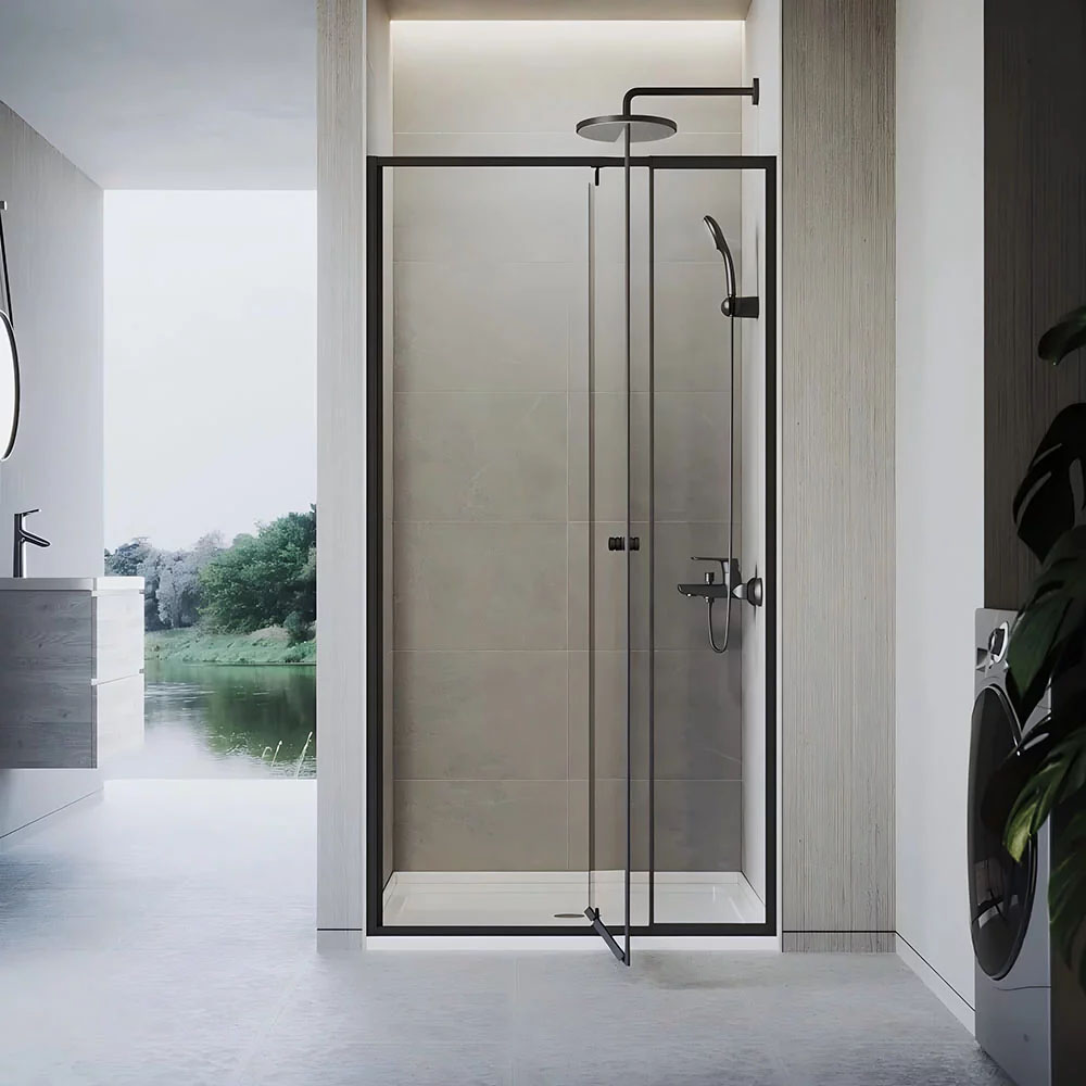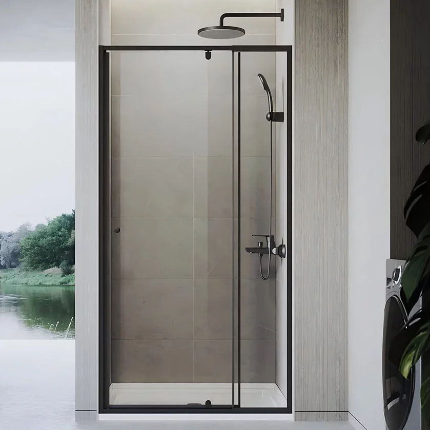 Дверь в нишу распашная Veconi VN-26B 110х195 см черный матовый/ прозрачное VN26B-110-01-C8