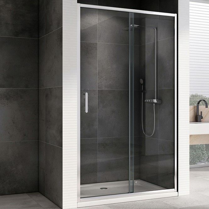 - Дверь в нишу раздвижная Abber Schwarzer Diamant 100х190 см хром/прозрачное AG301005