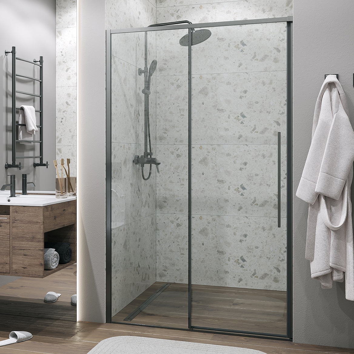 Дверь в нишу раздвижная Grossman Galaxy (110х195 см) графит сатин/прозрачное 100.K33.01.110.42.00