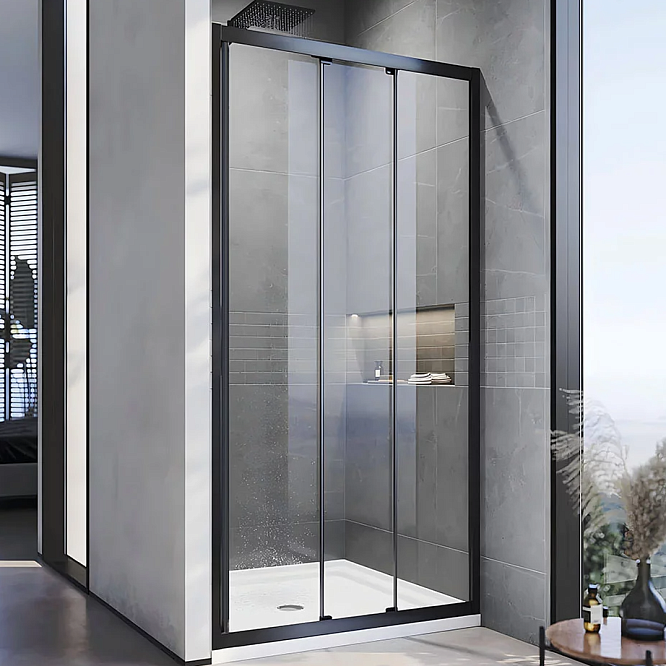 Дверь в нишу раздвижная Veconi VN-28B 110х195 см черный матовый/ прозрачное VN28B-110-01-C8