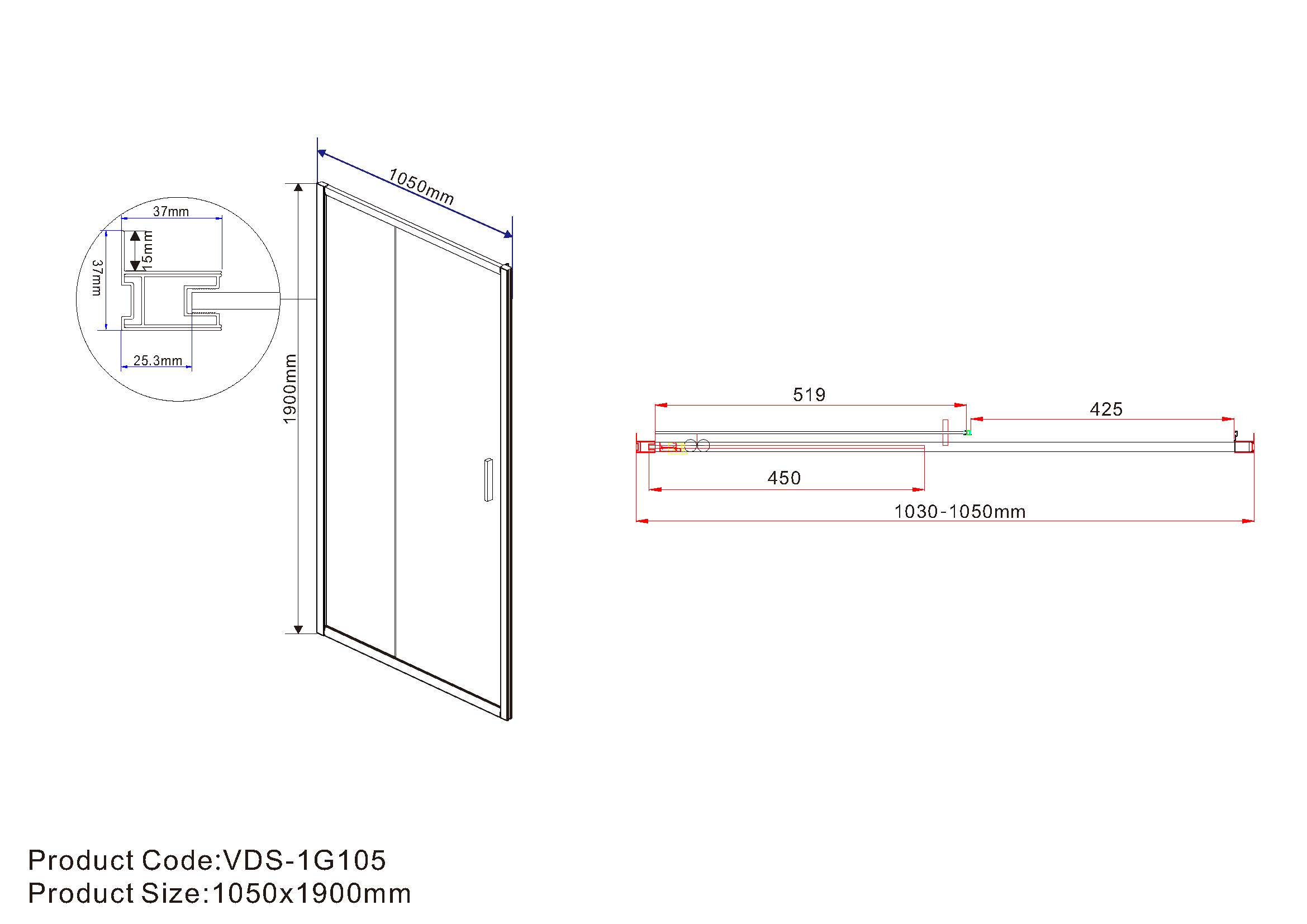 - Дверь в нишу раздвижная Vincea Garda 105x190 см черный/прозрачное VDS-1G105CLB