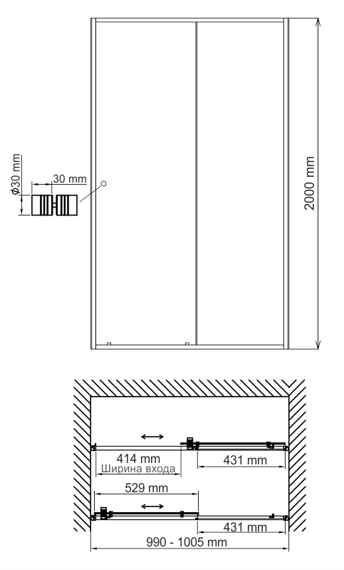 | Конструкция | 1 раздвижная/ вход 41,4 см |
