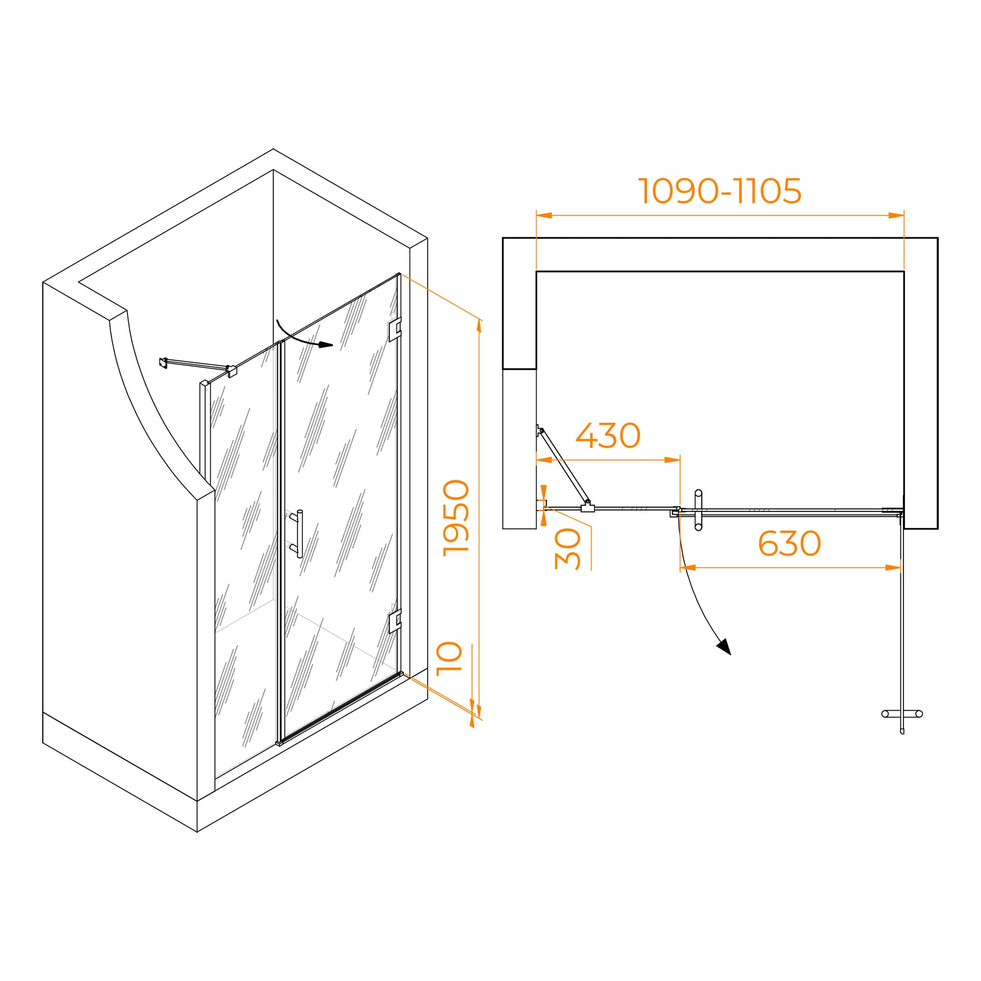 Распашная дверь в нишу RGW Hotel HO-012B 110x195 см черный/прозрачное 350601211-14