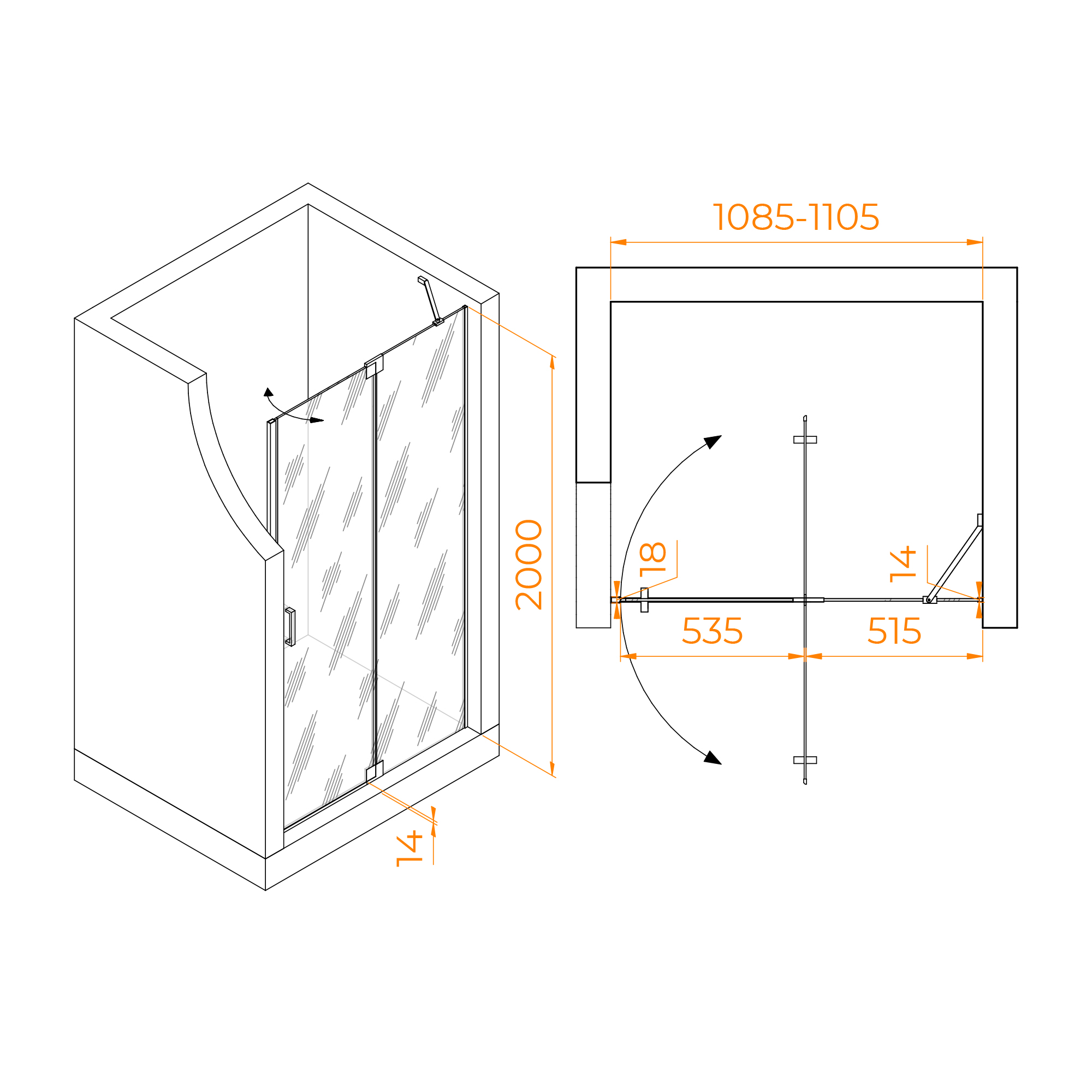 Распашная дверь в нишу RGW Hotel HO-014Gr 110x200 см серый/ прозрачное 350601411-110