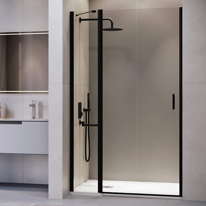 Распашная дверь в нишу RGW Leipzig LE-004B 100x195 см черный/ прозрачное 351200410-14