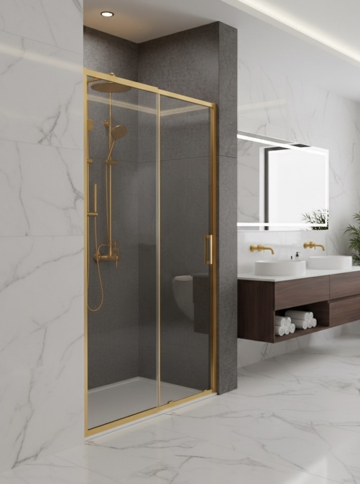 Душевая дверь раздвижная CeramaLux 120-130х190 см матовое золото/прозрачное CL307MG-1213 Matt Gold