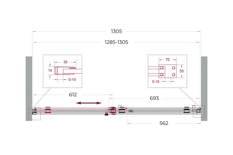 | Конструкция | Раздвижная, 1 секция двери, ширина входа 56,2 см |