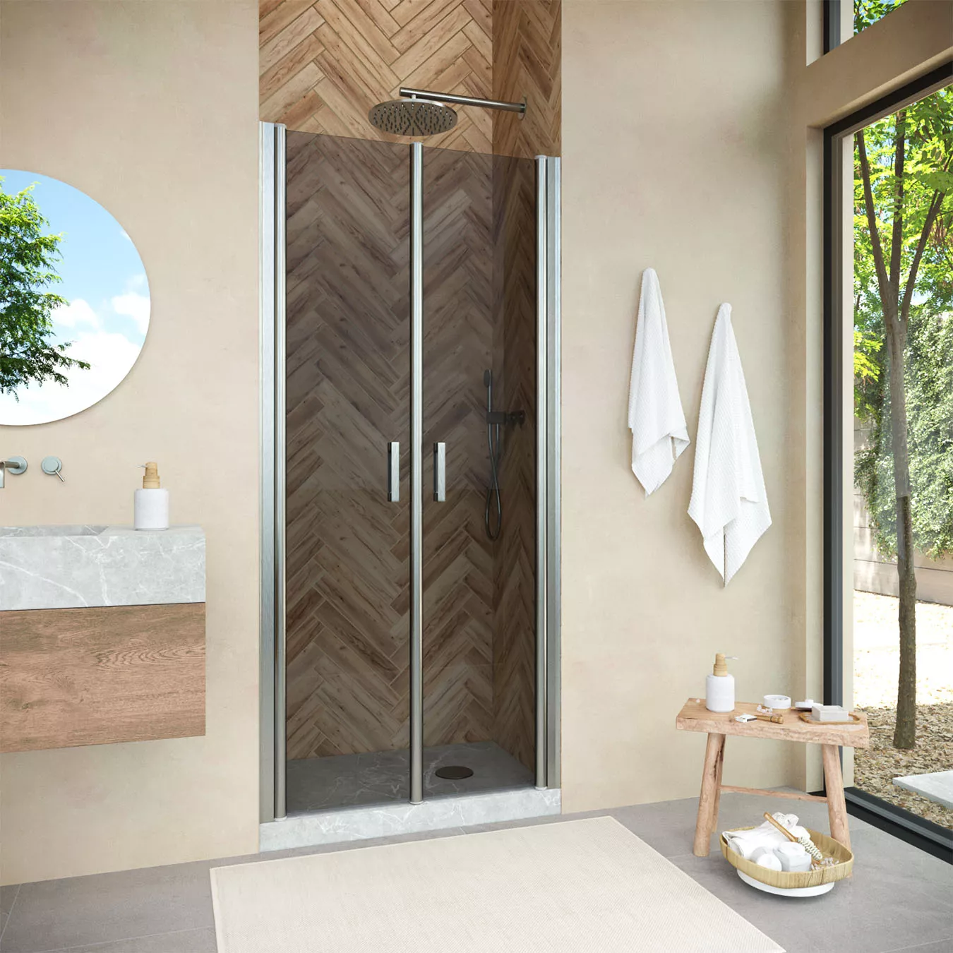 Душевая дверь Vegas-Glass Е2Р NOVO 120х200 см никель/стекло разное