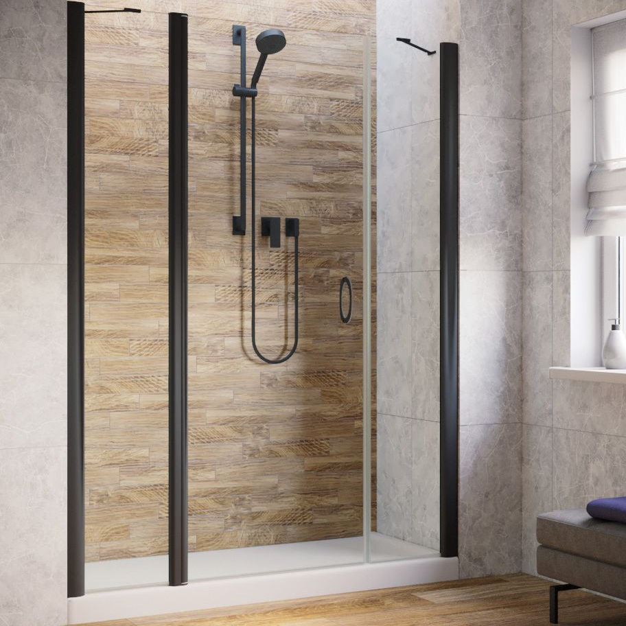 Душевая дверь Vegas-Glass EP-2F LUX 130х199,5 см черный матовый/стекло разное
