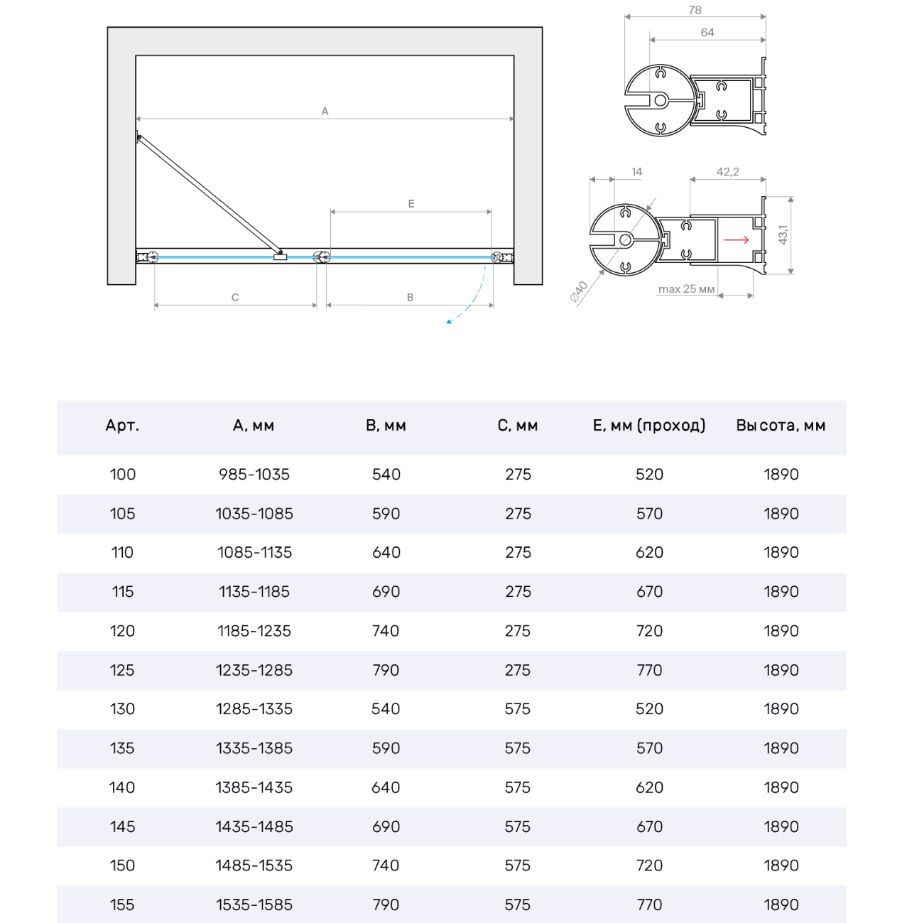 | Монтаж | В нишу, на поддон, напольный |