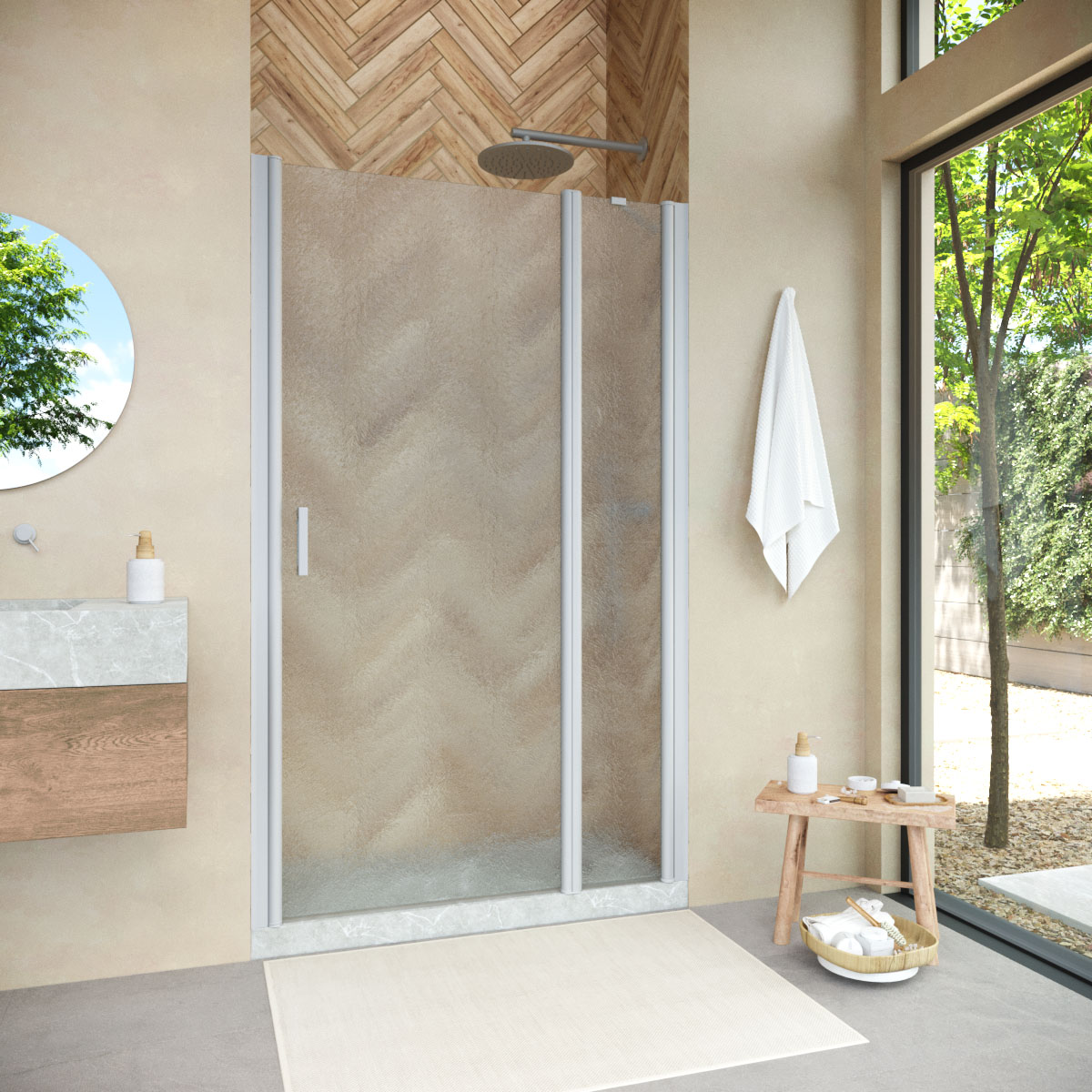 Душевая дверь Vegas-Glass EP-F-1 NOVO 130х200 см хром матовый/стекло разное