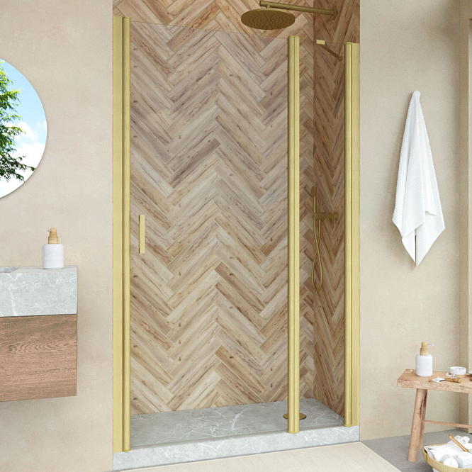 Душевая дверь Vegas-Glass EP-F-1 NOVO 135х200 см золото матовое/стекло разное
