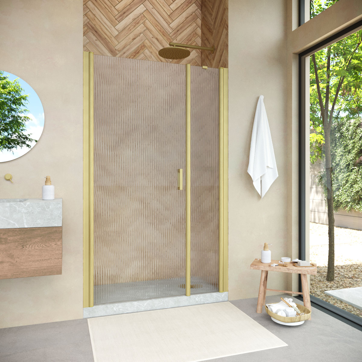 Душевая дверь Vegas-Glass EP-F-2 NOVO 120х200 см золото матовое/стекло разное