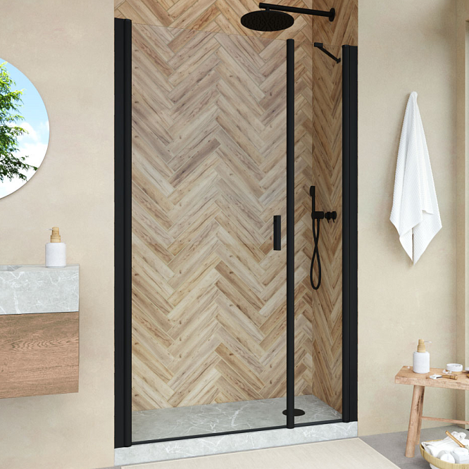 Душевая дверь Vegas-Glass EP-F-2 NOVO 130х200 см черный матовый/стекло разное