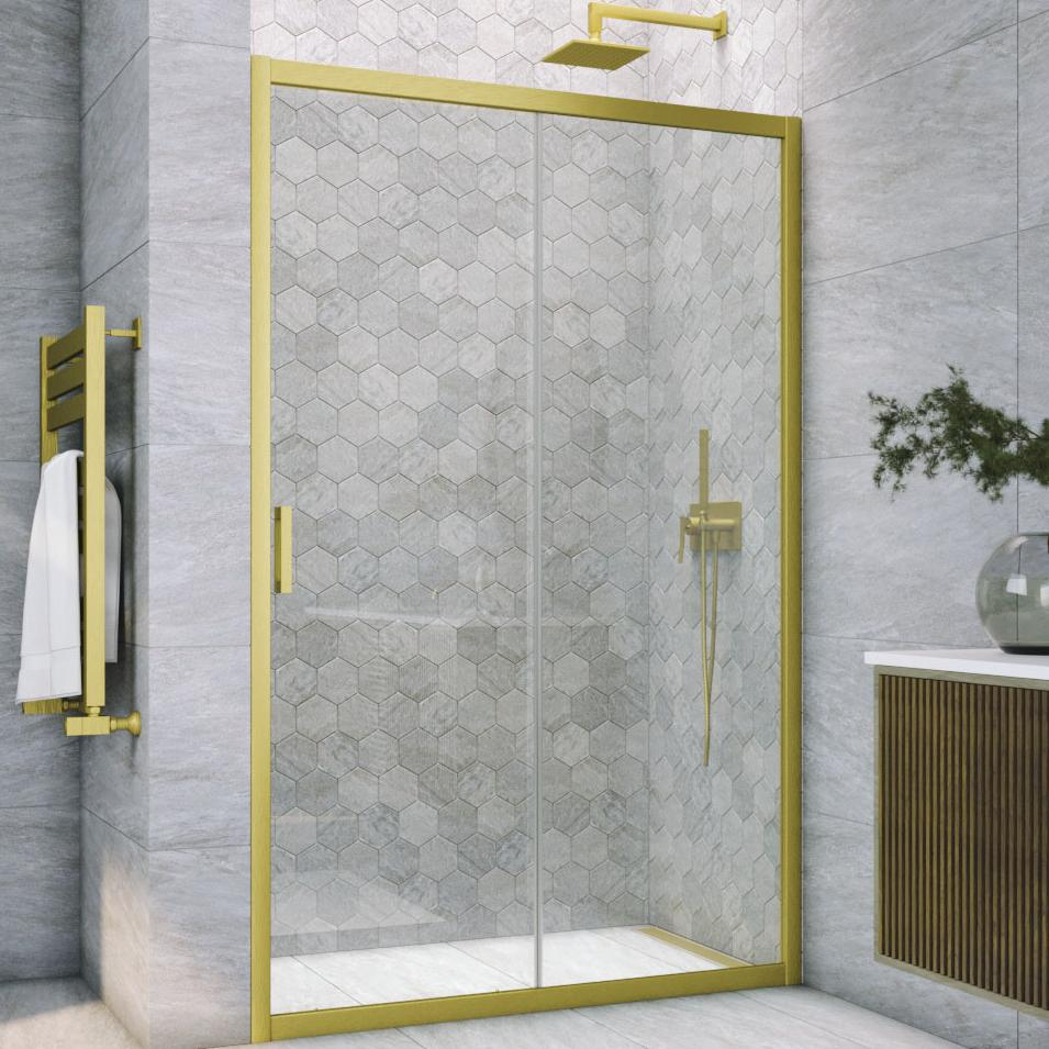 Душевая дверь Vegas-Glass ZP NOVO 130х200 см золото матовое/стекло разное