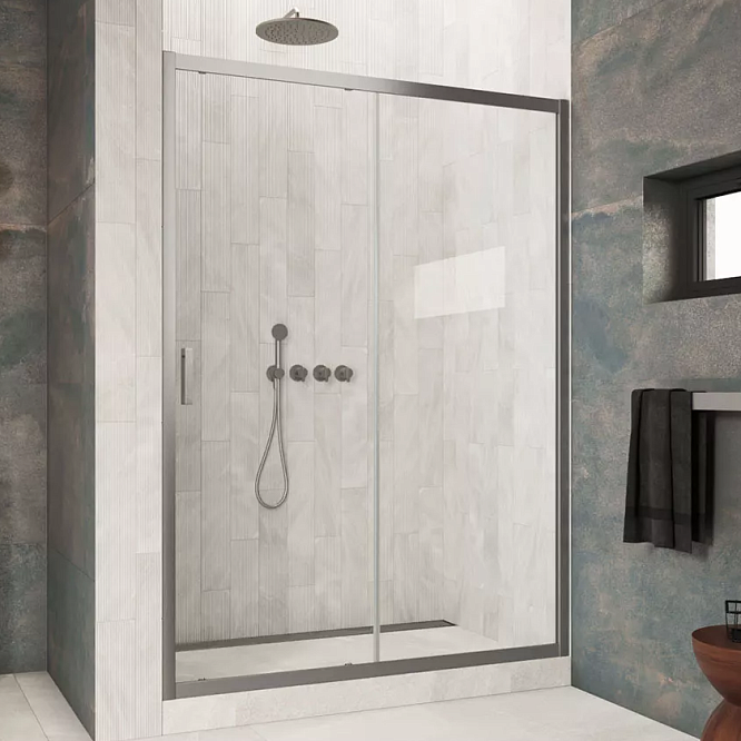 Душевая дверь Vegas-Glass ZP Protec 120х200 см оружейная сталь/стекло разное