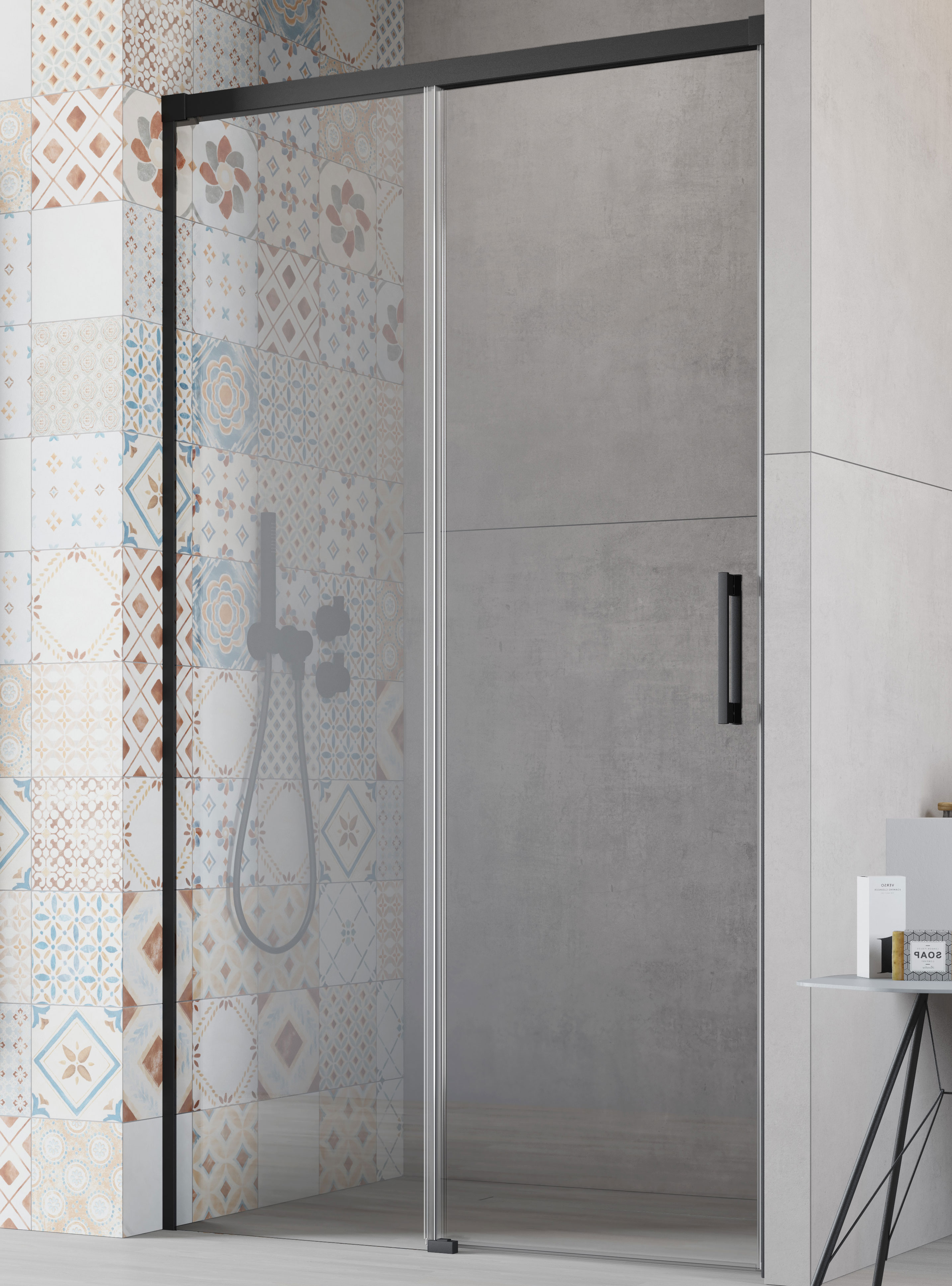 Коллекция Idea - это первая коллекция в стиле настоящего минимализма — двойные ролики спрятаны внутри профилей, на пристенных профилях отсутствуют даже заглушки болтов — в место них маскировочная лента Nastro Chromo. Все изделия серии допускается устанавливать как на поддон так и непосредственно на пол. Кроме того, все изделия допускается устанавливать с порогом или без порога меняя нижний фиксатор (в комплекте).