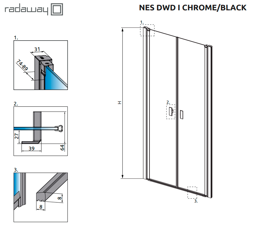 Дверь в нишу Radaway Nes Black DWD I 120х200 черный 10027120-54-01