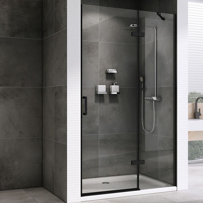 Дверь в нишу распашная Abber Zart 120х195 см черный/прозрачное AG08120B