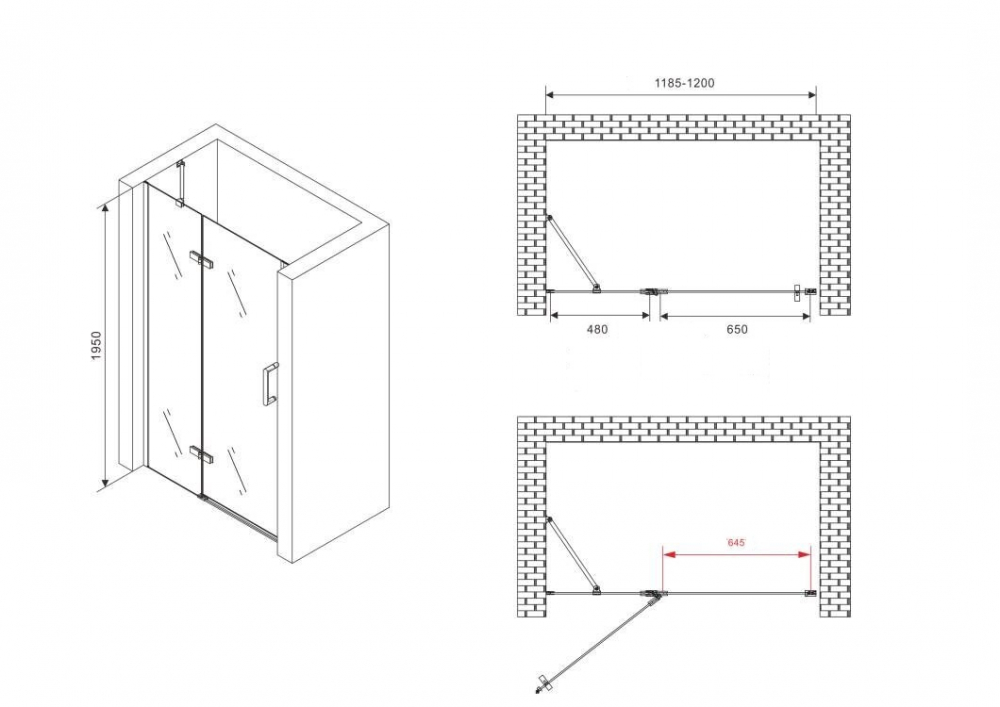 | Конструкция | 1 распашная/ вход 64,5 см |